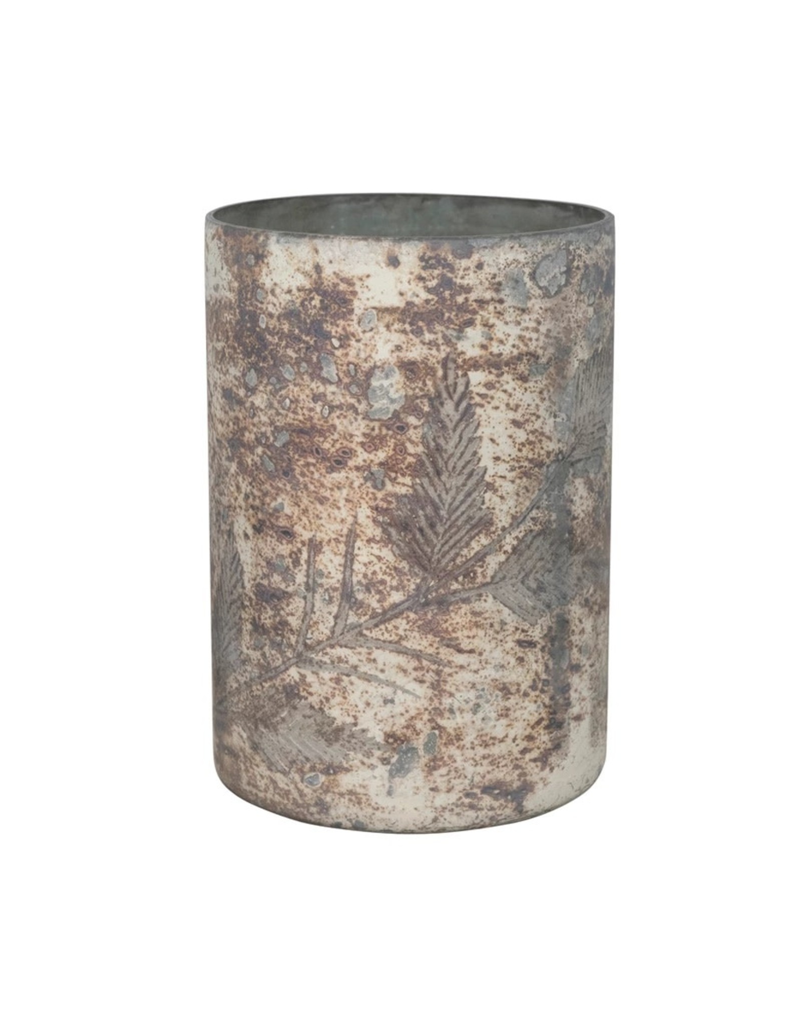 XM9507 Glass Candle Holder Etched Leaf Pattern